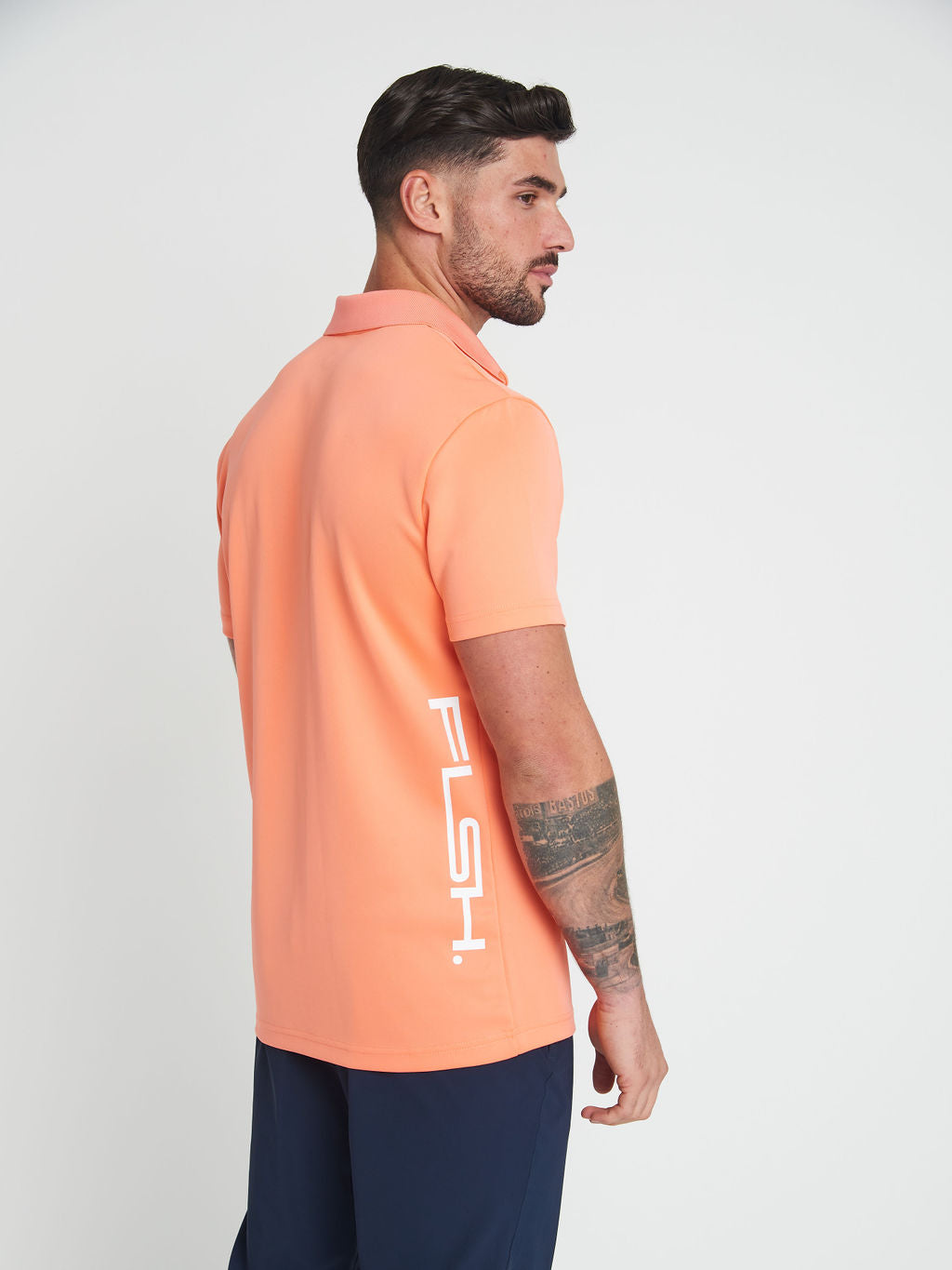 Introducing 'The Pulse' – our premier shirt featuring a classic collar, a first for our collection. Designed with a slightly wider silhouette, The Pulse offers a relaxed fit for those who prefer a bit more room. It's detailed with a discreet rubber patch on the left chest and a striking vertical print down the back, showcasing the iconic Flush branding. Crafted from ultra-soft, ultra-stretchy premium recycled polyester fabric, The Pulse might just be our most comfortable top yet.
